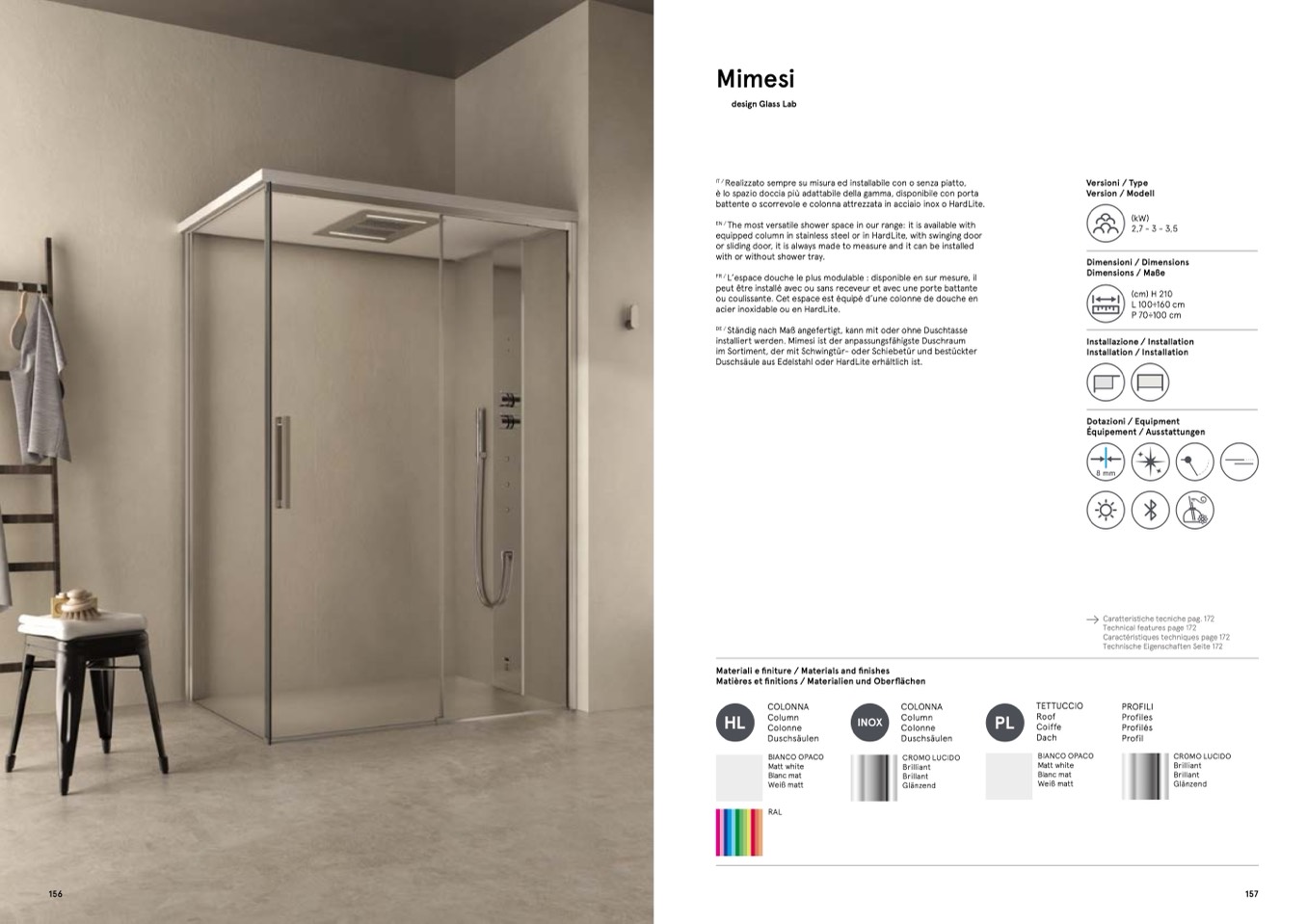installiert werden. Mimesi ist der anpassungsfähigste Duschraum