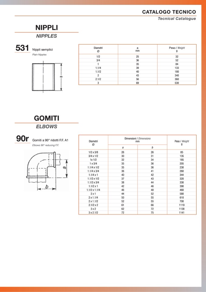 Gomiti a 90° ridotti F.F. A1