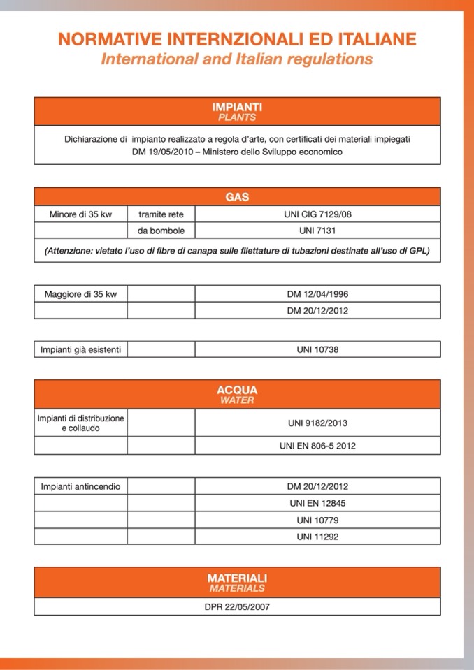 (Attenzione: vietato l’uso di fibre di canapa sulle filettature di tubazioni destinate all’uso di GPL)
