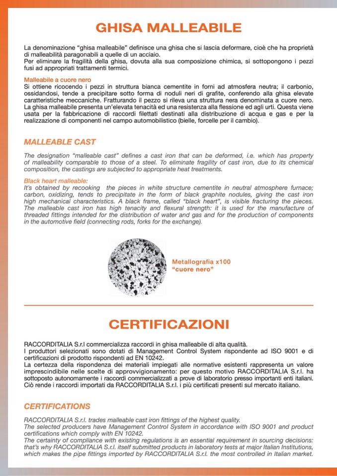 RACCORDITALIA S.r.l. trades malleable cast iron fittings of the highest quality.