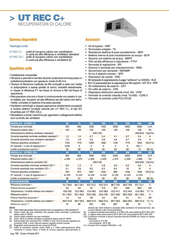 (1) Valori riferiti alla portata d’aria nominale vinto il recuperatore e i filtri standard F7