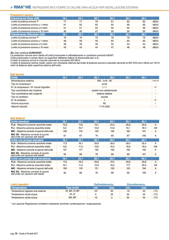 Le prestazioni sonore sono riferite all’unità funzionante in raffreddamento in condizioni nominali A35W7.