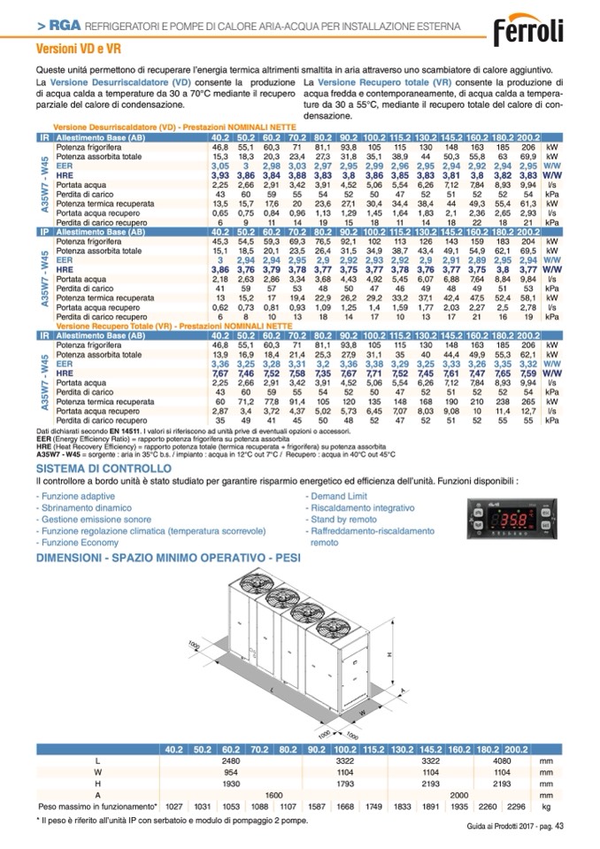 La Versione Desurriscaldatore (VD) consente la produzione La Versione Recupero totale (VR) consente la produzione di