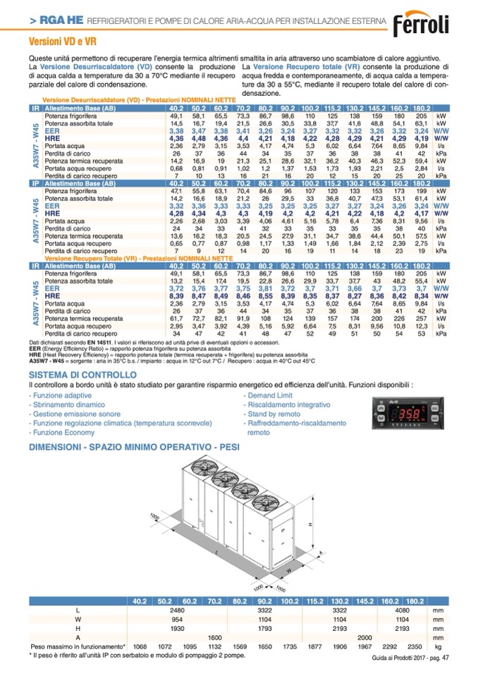 La Versione Desurriscaldatore (VD) consente la produzione La Versione Recupero totale (VR) consente la produzione di