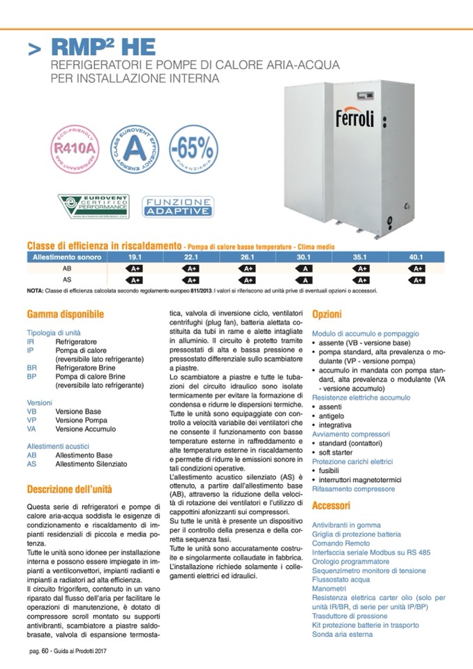NOTA: Classe di efficienza calcolata secondo regolamento europeo 811/2013. I valori si riferiscono ad unità prive di eventuali opzioni o accessori.