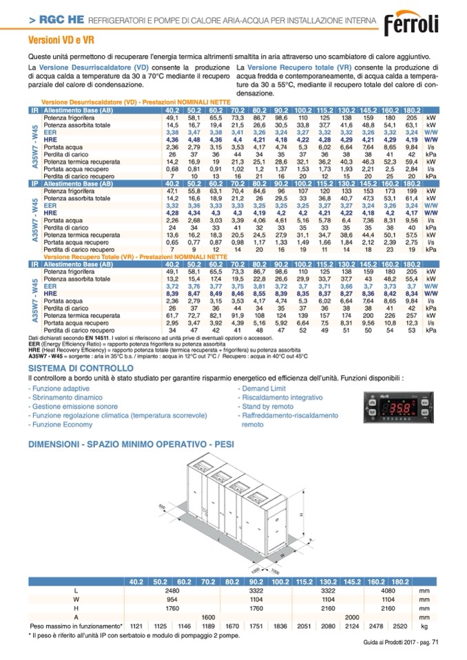 La Versione Desurriscaldatore (VD) consente la produzione La Versione Recupero totale (VR) consente la produzione di