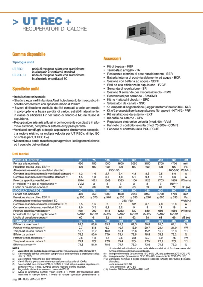 (1) Valori riferiti alla portata d’aria nominale vinto il recuperatore e i filtri standard F7
