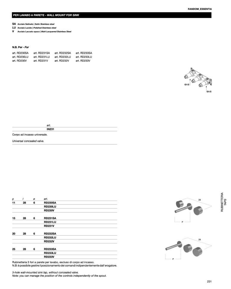 PER LAVABO A PARETE - WALL MOUNT FOR SINK