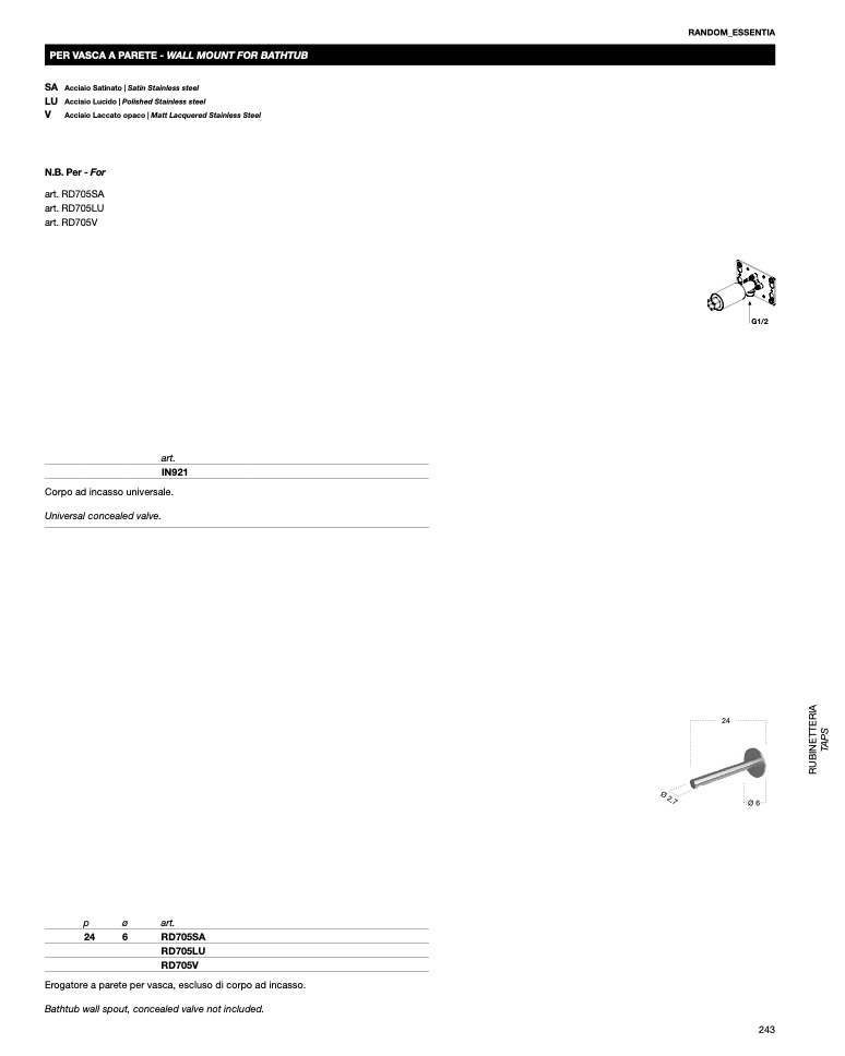 PER VASCA A PARETE - WALL MOUNT FOR BATHTUB