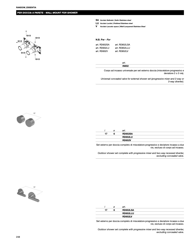 PER DOCCIA A PARETE - WALL MOUNT FOR SHOWER