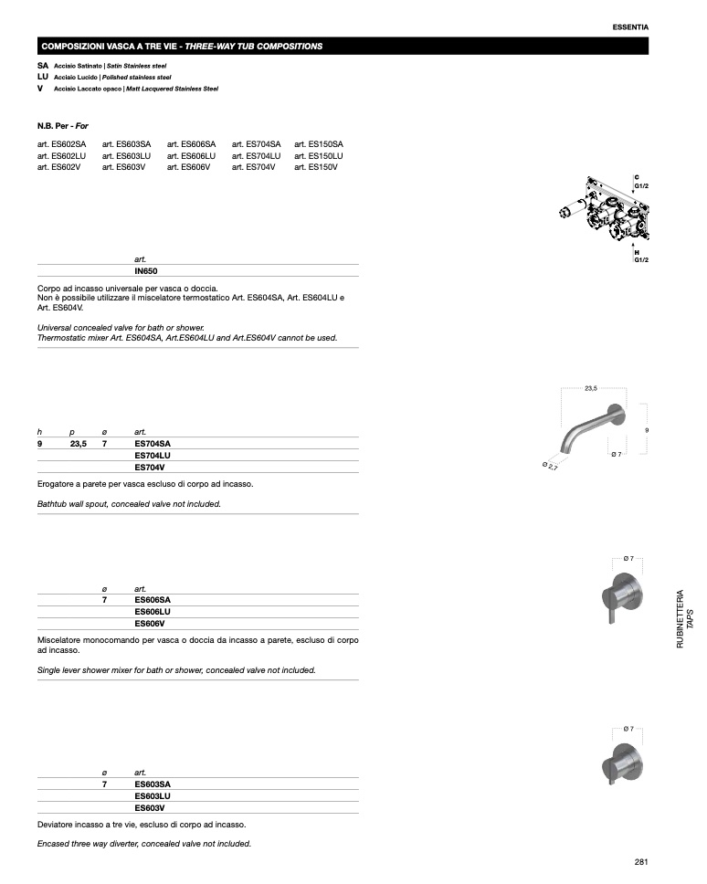 Thermostatic mixer Art. ES604SA, Art.ES604LU and Art.ES604V cannot be used.