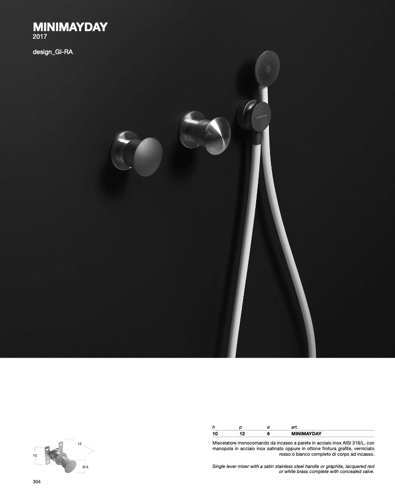 Miscelatore monocomando da incasso a parete in acciaio inox AISI 316/L, con