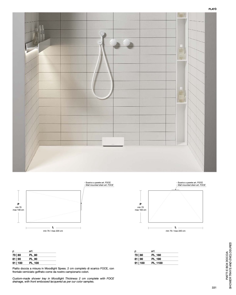 Custom-made shower tray in Moodlight Thickness 2 cm complete with FOCE