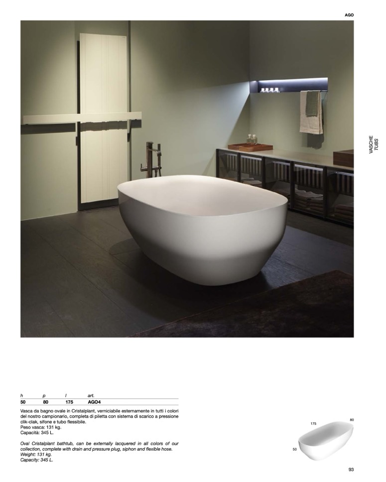 Oval Cristalplant bathtub, can be externally lacquered in all colors of our