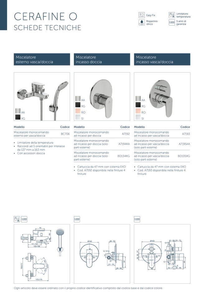 • Cod. A7192 disponibile nelle finiture 4