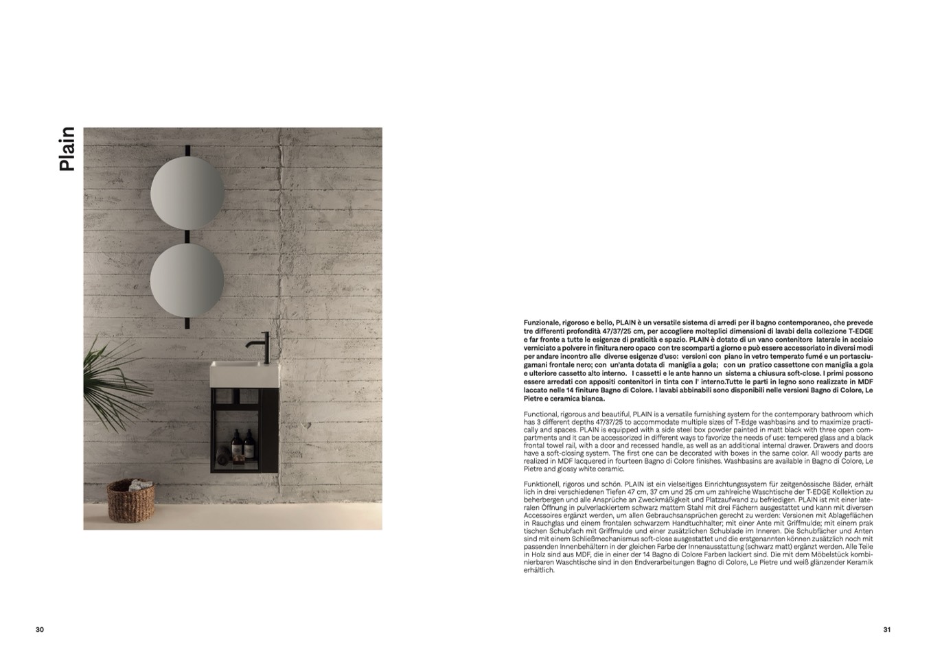 Functional, rigorous and beautiful, PLAIN is a versatile furnishing system for the contemporary bathroom which