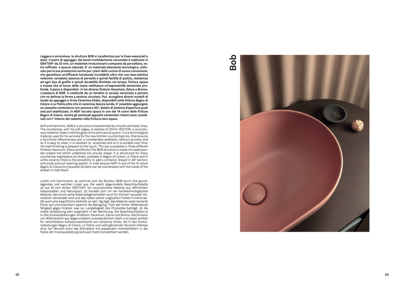 fonda. Il piano è disponibile in tre diverse finiture: Keranium, Edora e Bromo.