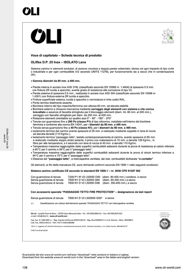 OLI srl - Località Piani di Mura - 25070 Casto (Brescia) Italia - Tel. +39 0365/890.611 - Fax +39 0365/879.922