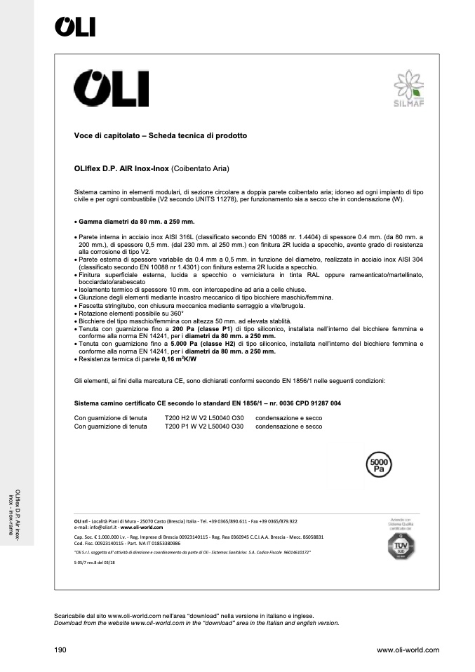 OLI srl - Località Piani di Mura - 25070 Casto (Brescia) Italia - Tel. +39 0365/890.611 - Fax +39 0365/879.922