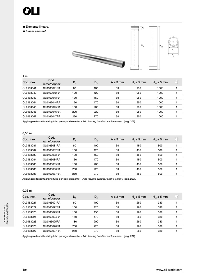 Aggiungere fascetta stringitubo per ogni elemento. - Add locking band for each element. (pag. 207).