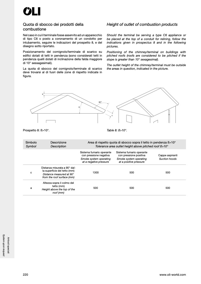 Tolerance area outlet height above pitched roof ß>10°