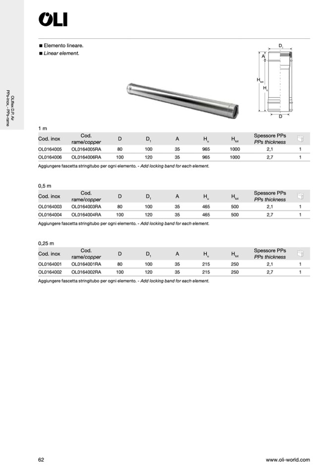 Aggiungere fascetta stringitubo per ogni elemento. - Add locking band for each element.