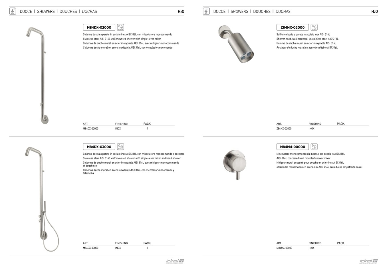 Stainless steel AISI 316L wall mounted shower with single-lever mixer
