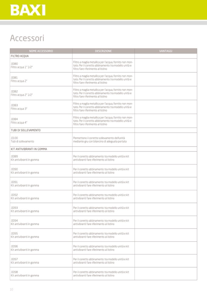 filtro fare riferimento al listino