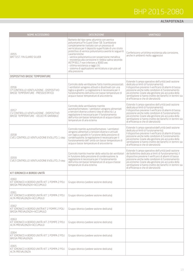 dell’unita con basse temperature di acqua e basse