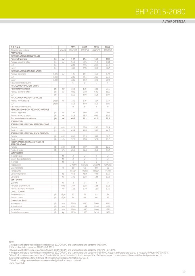 1 Acqua scambiatore freddo lato utenza (in/out) 12,0°C/7,0°C; aria scambiatore lato sorgente (in) 35,0°C