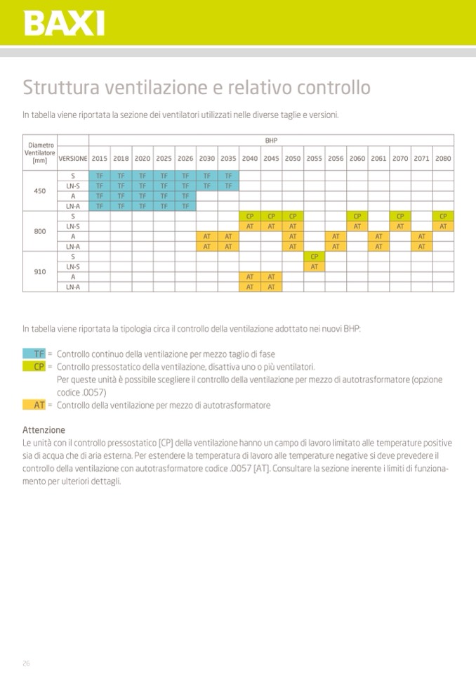 In tabella viene riportata la tipologia circa il controllo della ventilazione adottato nei nuovi BHP: