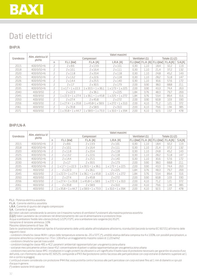 L.R.A. [A] F.L.I.[kW] F.L.A. [A]