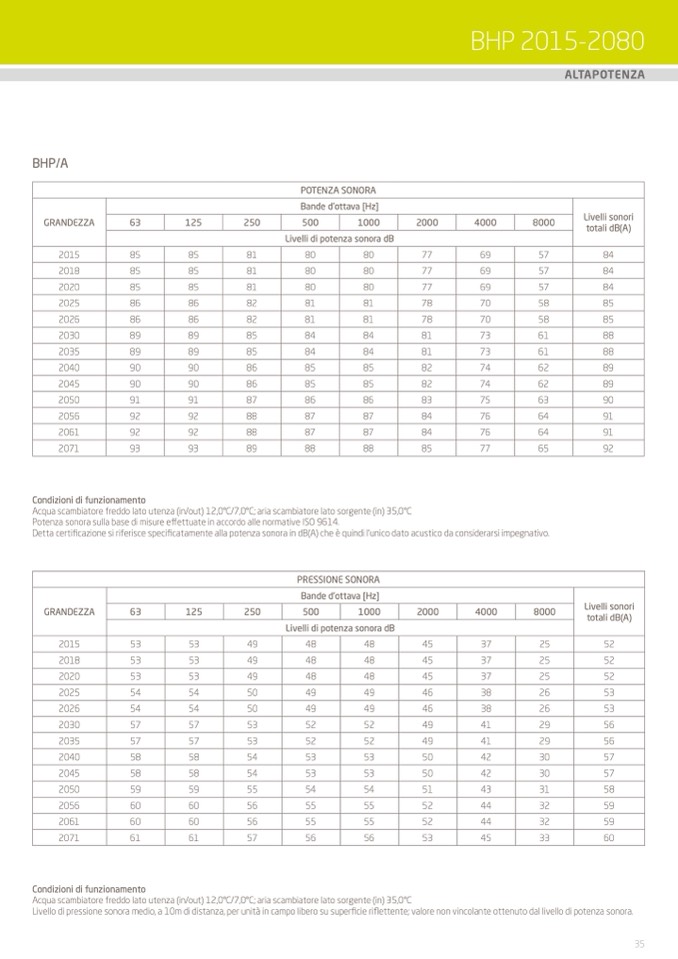 Detta certificazione si riferisce specificatamente alla potenza sonora in dB(A) che è quindi l’unico dato acustico da considerarsi impegnativo.