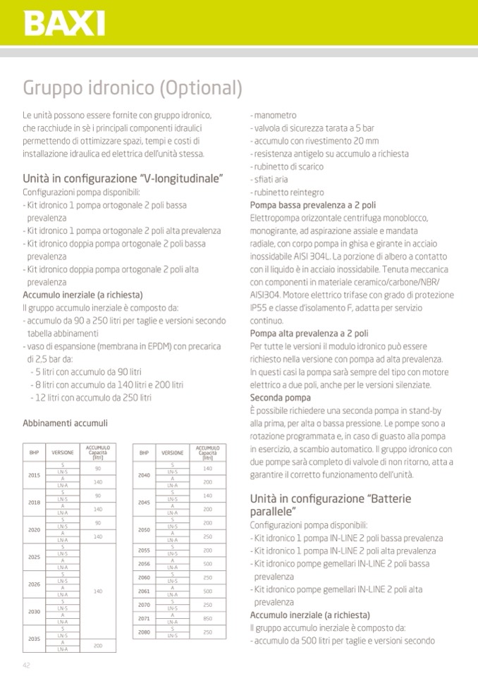 - accumulo da 90 a 250 litri per taglie e versioni secondo