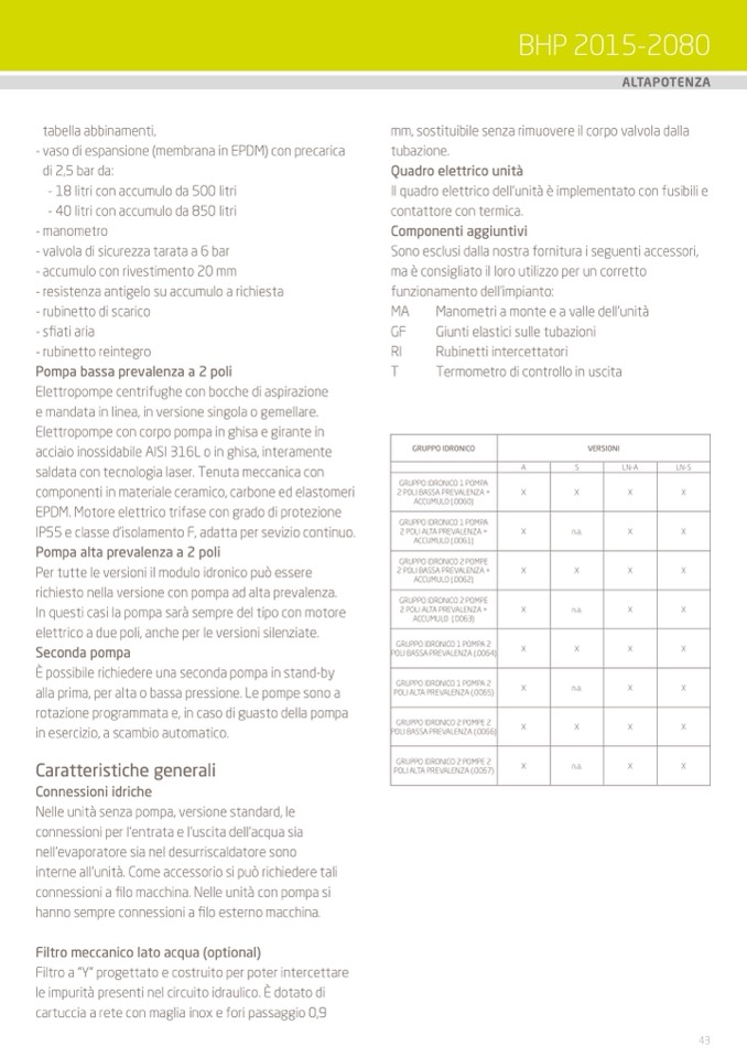 alla prima, per alta o bassa pressione. Le pompe sono a