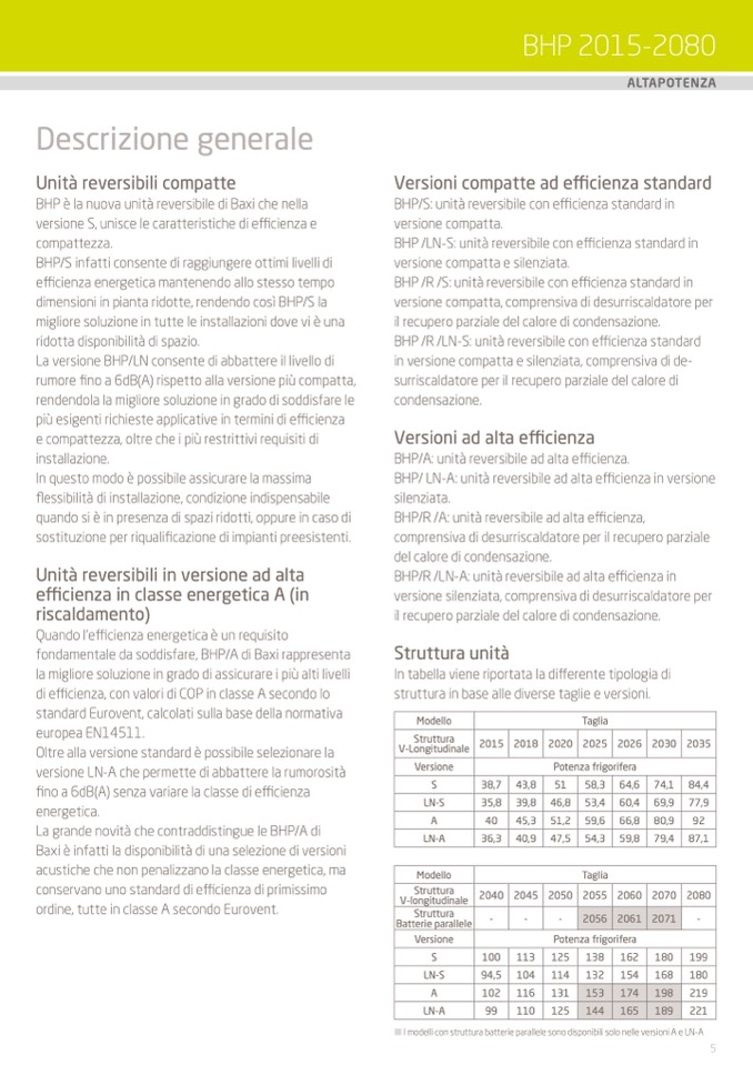 BHP/R /LN-A: unità reversibile ad alta efficienza in
