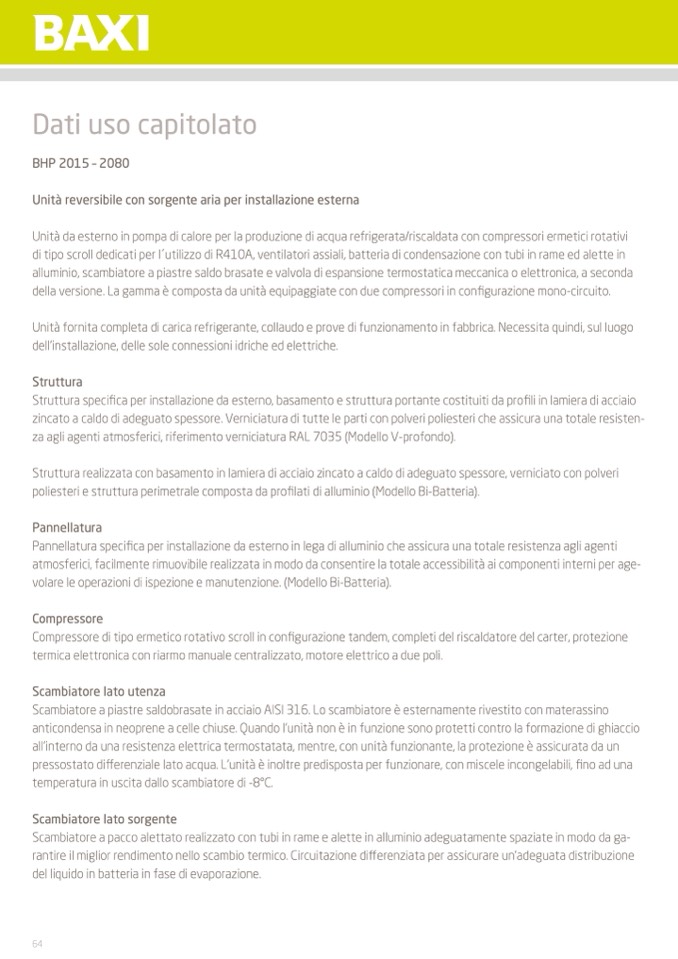 di tipo scroll dedicati per l ́utilizzo di R410A, ventilatori assiali, batteria di condensazione con tubi in rame ed alette in