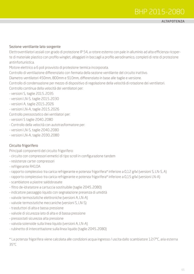 - rapporto complessivo tra carica refrigerante e potenza frigorifera* inferiore a 0,12 g/W (versioni S, LN-S, A)