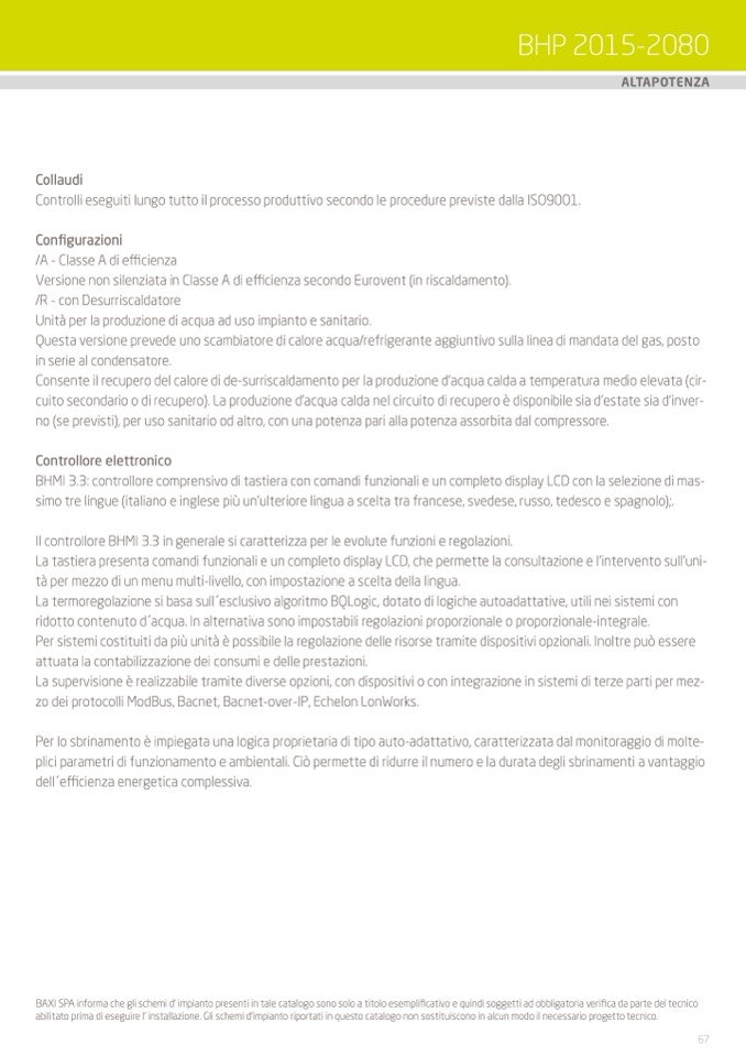BAXI SPA informa che gli schemi d' impianto presenti in tale catalogo sono solo a titolo esemplificativo e quindi soggetti ad obbligatoria verifica da parte del tecnico