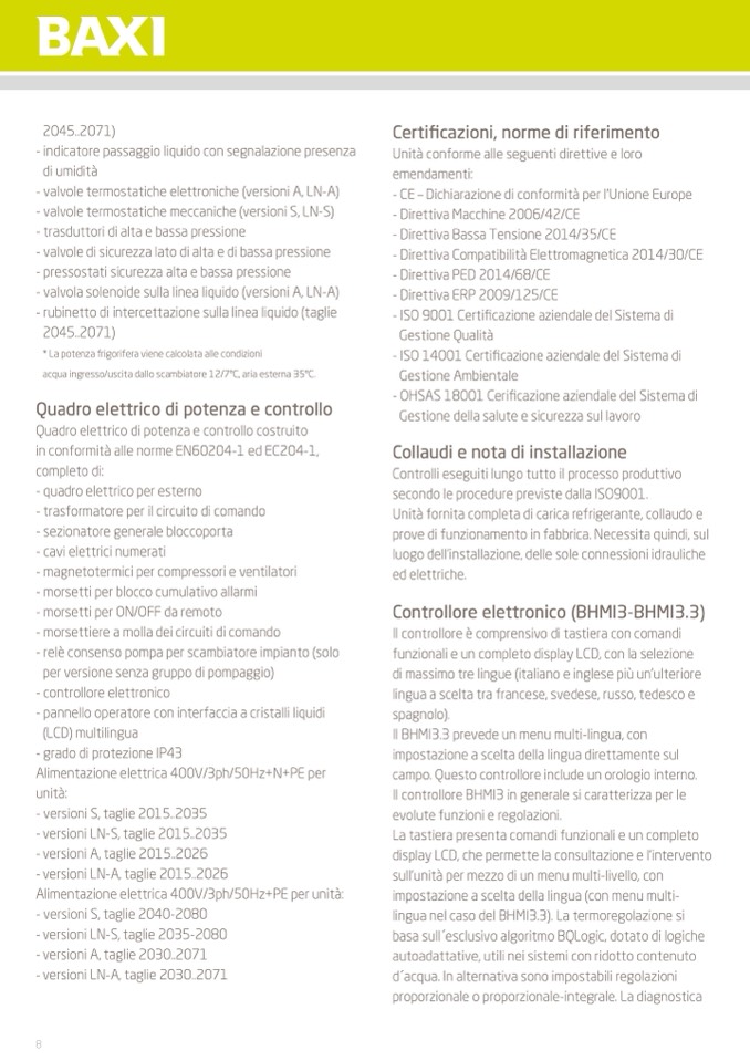 Unità fornita completa di carica refrigerante, collaudo e