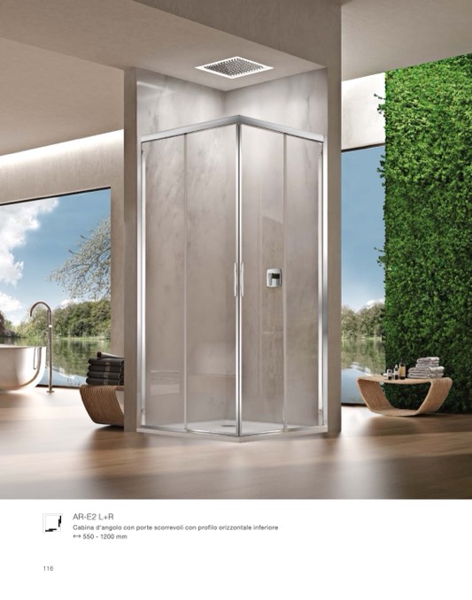 Cabina d‘angolo con porte scorrevoli con profilo orizzontale inferiore