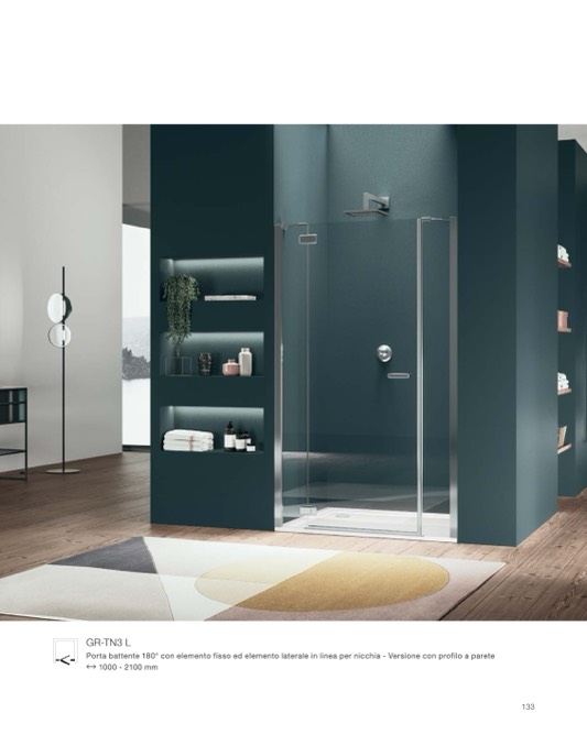 Porta battente 180° con elemento fisso ed elemento laterale in linea per nicchia - Versione con profilo a parete