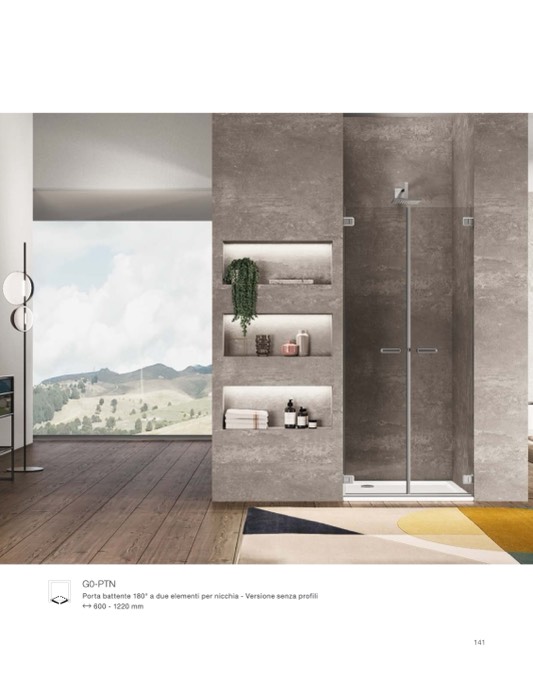 Porta battente 180° a due elementi per nicchia - Versione senza profili