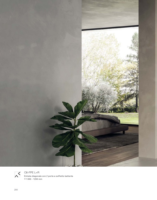 Entrata diagonale con 2 porte a soffietto battente