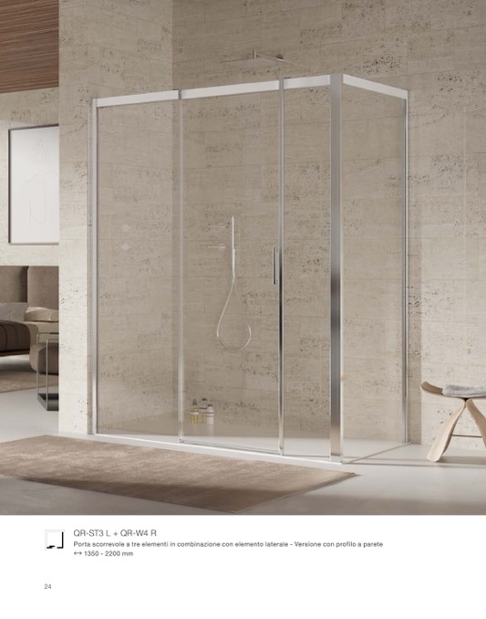 Porta scorrevole a tre elementi in combinazione con elemento laterale - Versione con profilo a parete