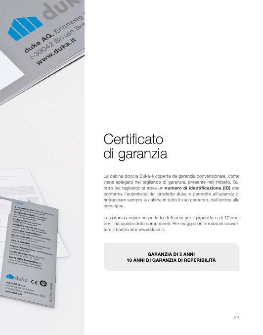 La cabina doccia Duka è coperta da garanzia convenzionale, come