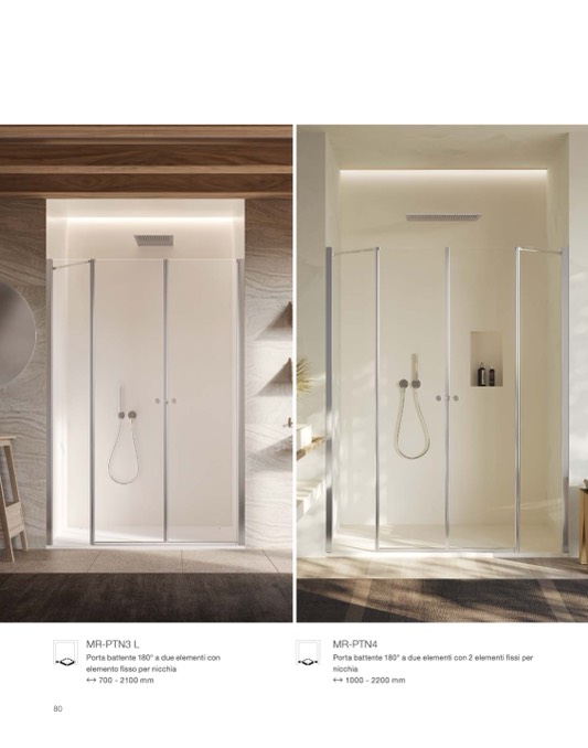 Porta battente 180° a due elementi con 2 elementi fissi per