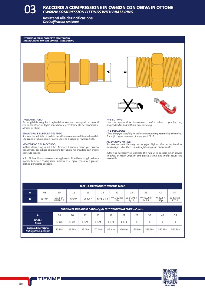 TABELLA FILETTATURE/ THREADS TABLE