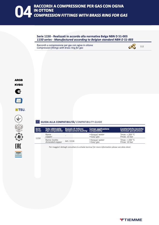 COMPRESSION FITTINGS WITH BRASS RING FOR GAS