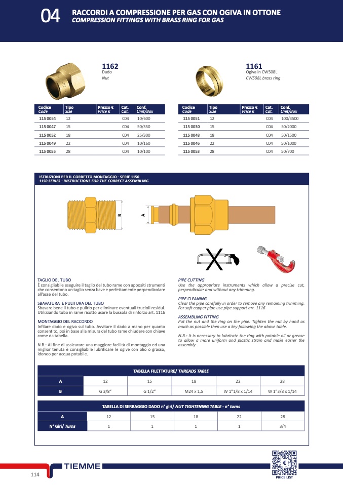 COMPRESSION FITTINGS WITH BRASS RING FOR GAS
